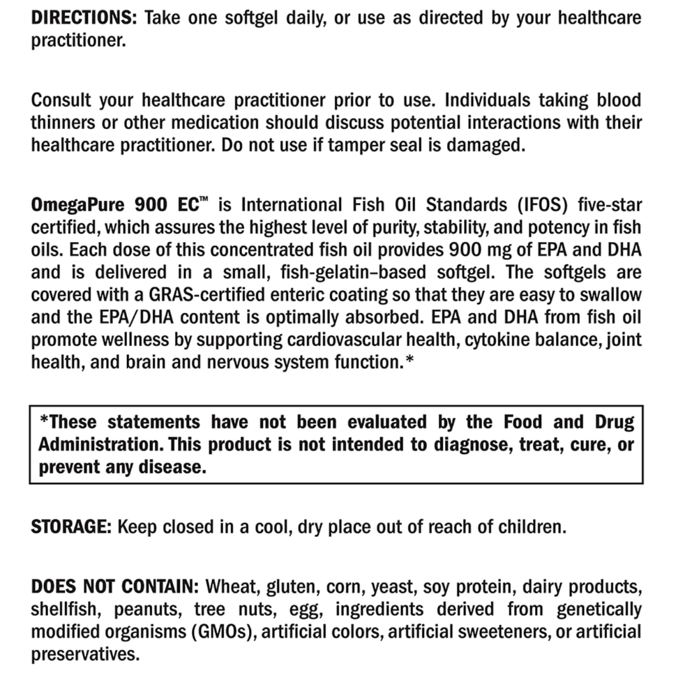 El aceite de pescado en este suplemento premium de omega 3 esta certificado por las Normas Internacionales de Aceite de Pescado (IFOS) de cinco estrellas, lo que garantiza el más alto nivel de pureza, estabilidad y potencia en los suplementos de aceite de pescado omega 3. Cada capsula de aceite de pescado de Alaska proporciona 900 mg de omega 3 EPA DHA. Pastillas de aceite de pescado mejoradas: estas cápsulas blandas están cubiertas con un recubrimiento entérico certificado GRAS para que sean fáciles de tragar y el contenido de ácidos grasos omega 3 EPA/ DHA se absorbe de manera óptima Los componentes de omega 3 del aceite de pescado DHA EPA pueden promover el bienestar al apoyar la salud cardiovascular, equilibrio de citoquinas, función cerebral y del sistema nervioso.